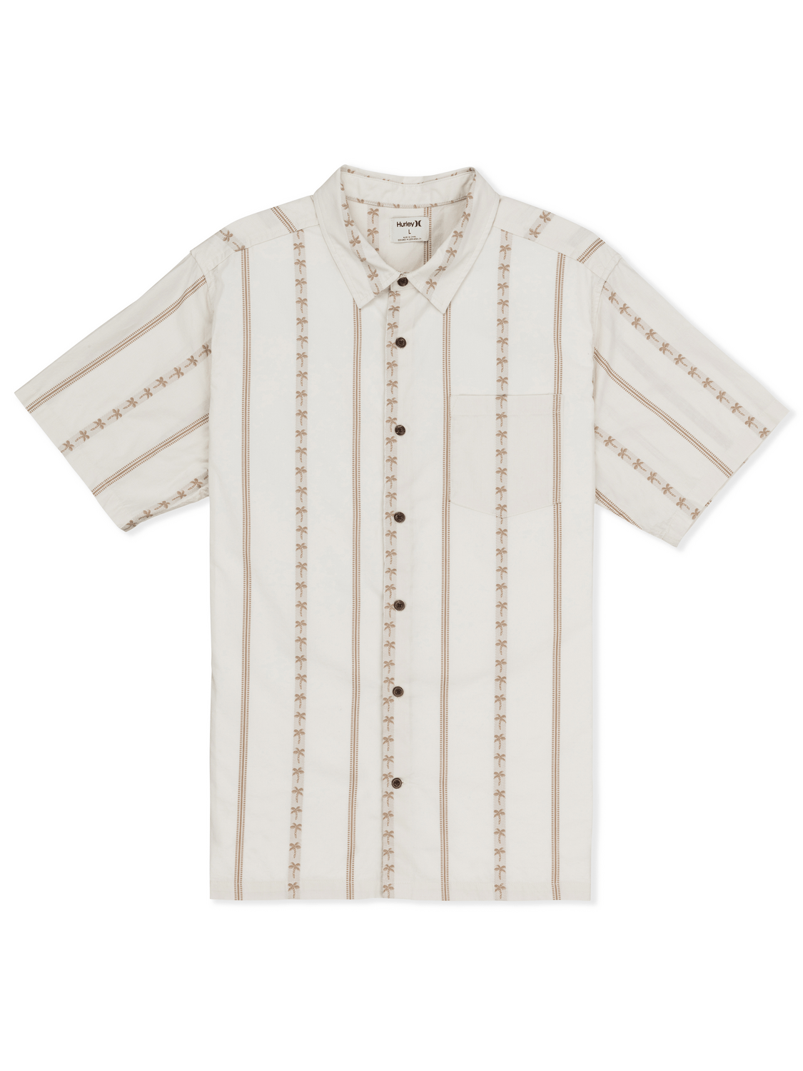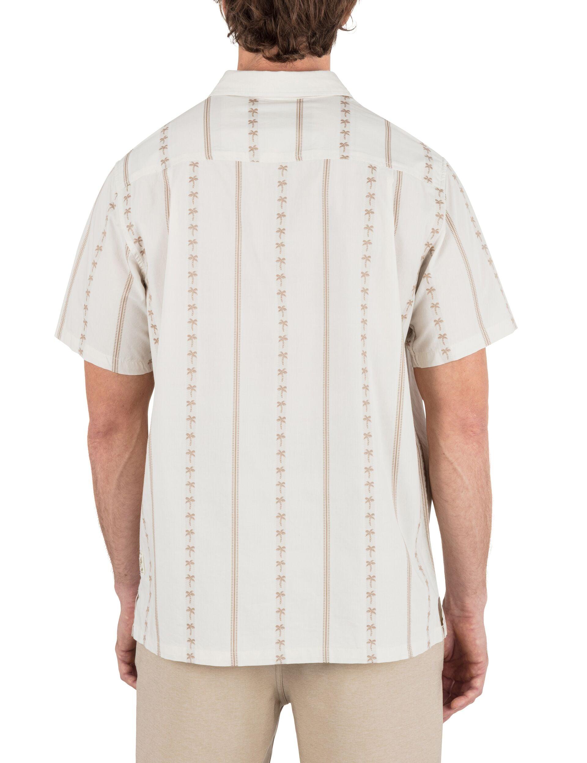 Keeping it classy in the Jacquard Rincon Short Sleeve Button-Down. Made from a cotton blend with straight hem side vents, this piece fits like a dream. We’ve detailed it with recycled coconut buttons and a palm tree jacquard print.
